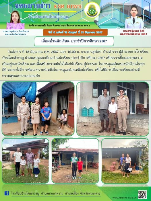 การออกเยี่ยมบ้านและตรวจสภาพความเป็นอยู่ของนักเรียนโรงเรียนบ้านโคกสำราญ ประจำปีการศึกษา 2567