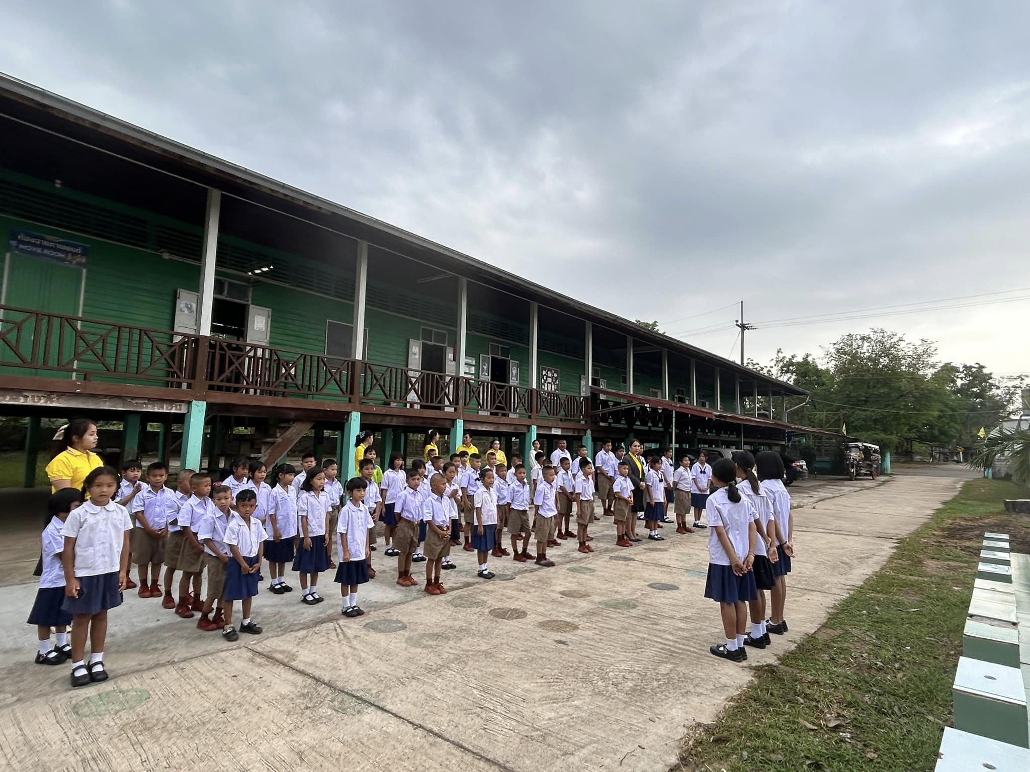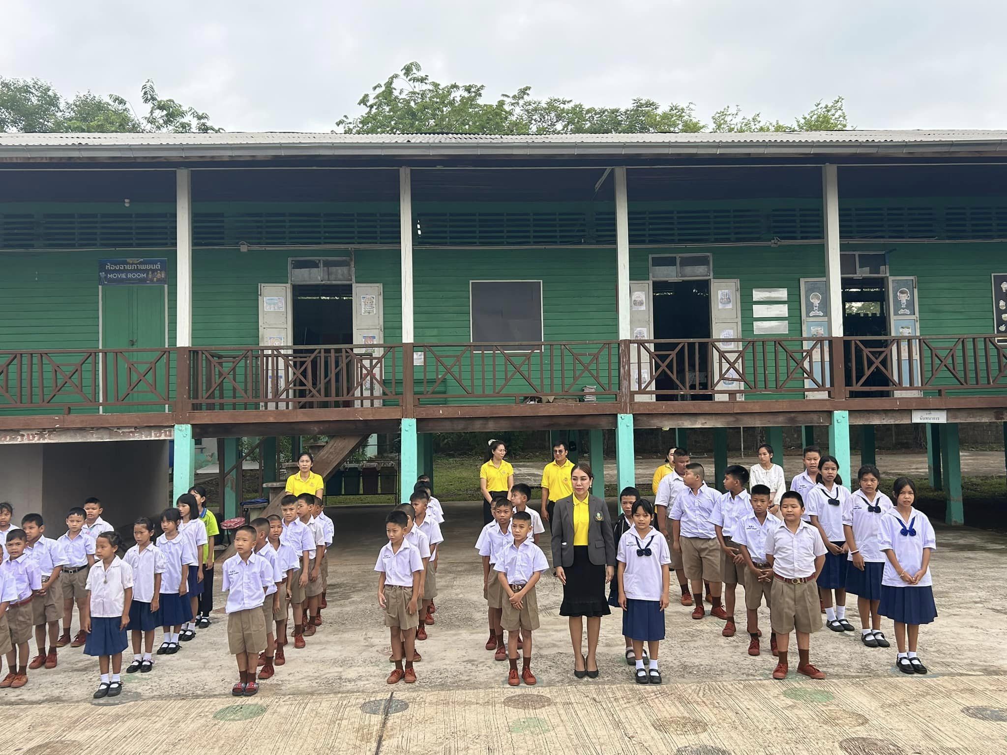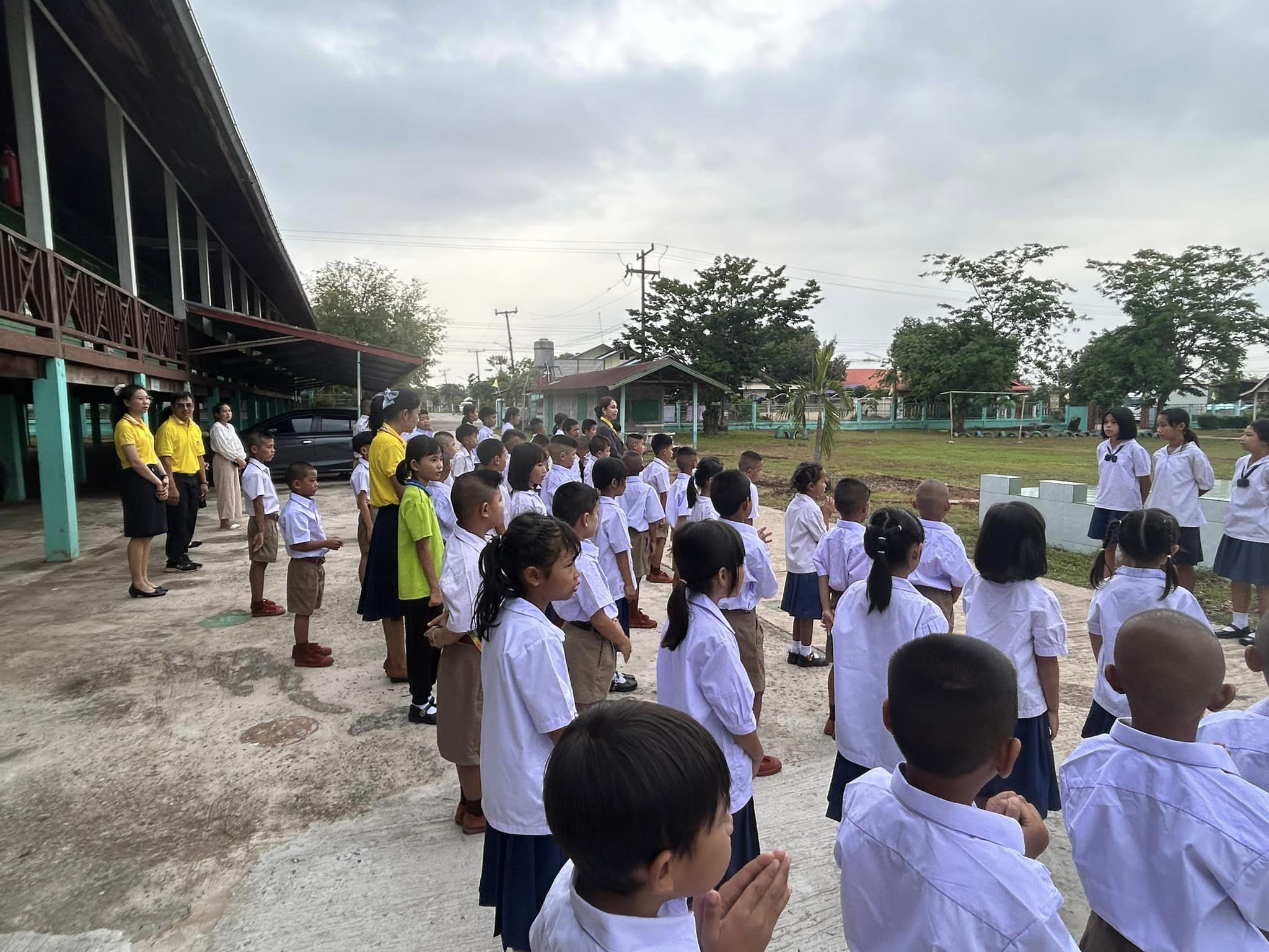 บรรยากาศการเข้าแถวเคารพธงชาติ กิจกรรมที่แสดงถึงความรักชาติ ศาสนา และพระมหากษัตริย์