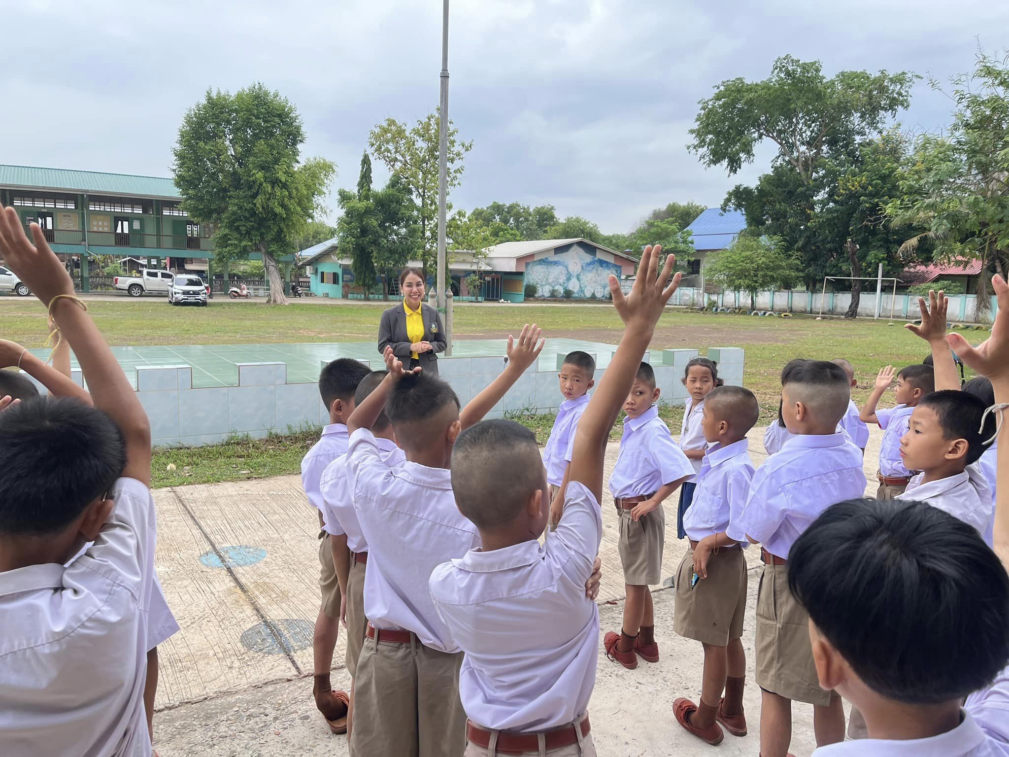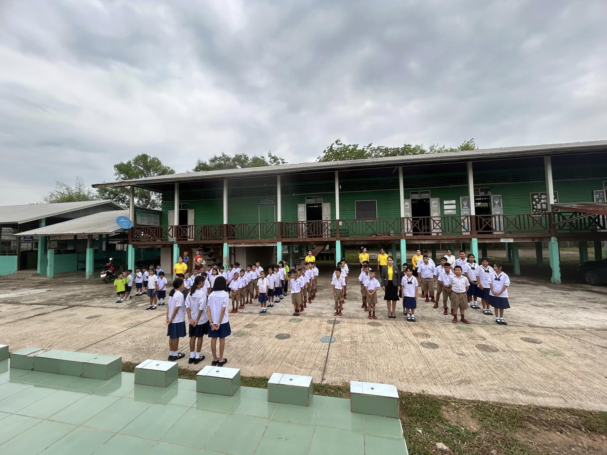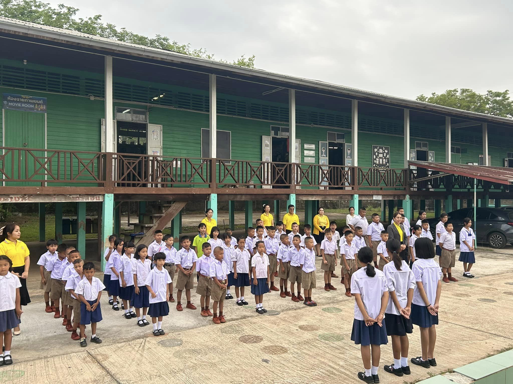 บรรยากาศการเข้าแถวเคารพธงชาติ กิจกรรมที่แสดงถึงความรักชาติ ศาสนา และพระมหากษัตริย์